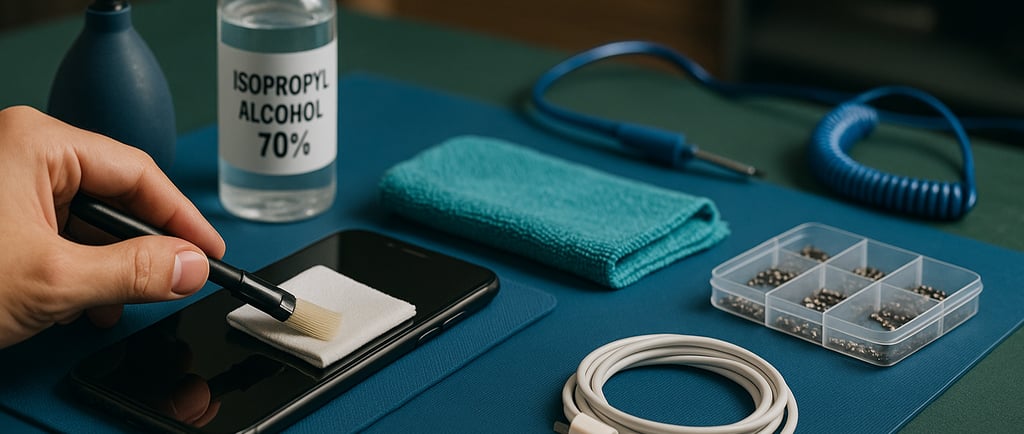 Perawatan port dan speaker jarang dibahas, padahal kotoran pada port USB-C adalah penyebab umum koneksi longgar dan gagal isi. Bersihkan port secara berkala menggunakan alat non-logam seperti tusuk gigi kayu dengan hati-hati; hindari klip logam karena risiko korsleting. Jika suara speaker mulai mendem, kemungkinan ada serat kain atau debu yang menutup kisi; hembuskan udara dari jarak aman atau gunakan sikat halus. Hindari meniup langsung dengan mulut karena uap air dapat masuk dan menempel pada membran.